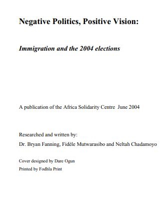 Negative Politics, Positive Vision: Immigration and the 2004 Elections is a sequel to Positive Politics: Participation of Immigrants and Ethnic Minorities in the Electoral Process published in November last year.